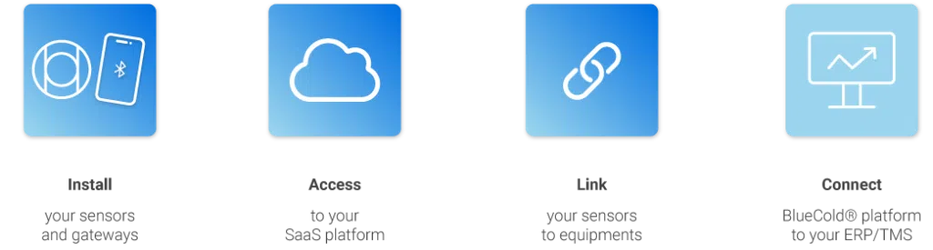 Install your BlueCold® temperature sensors and gateways in your equipment. Access the BlueCold® hosting platform. Link sensors to equipment. Connect the platform to your business solution.